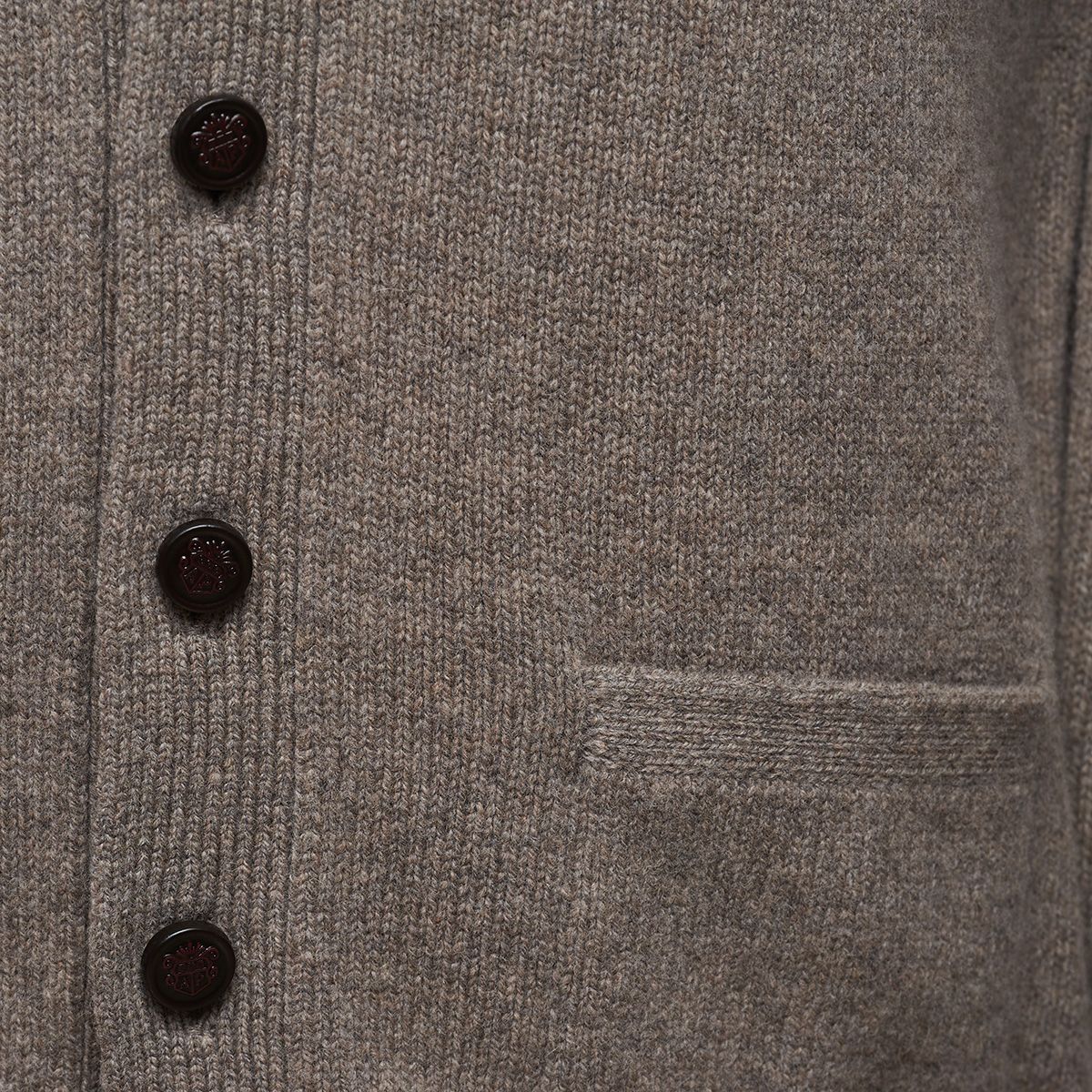 Посадка Classic Fit, V – образный вырез горловины, два кармана спереди, низ изделия и манжеты в рубчик, застежка на пять пуговиц. На пуговицах выгравирован фирменный герб бренда.