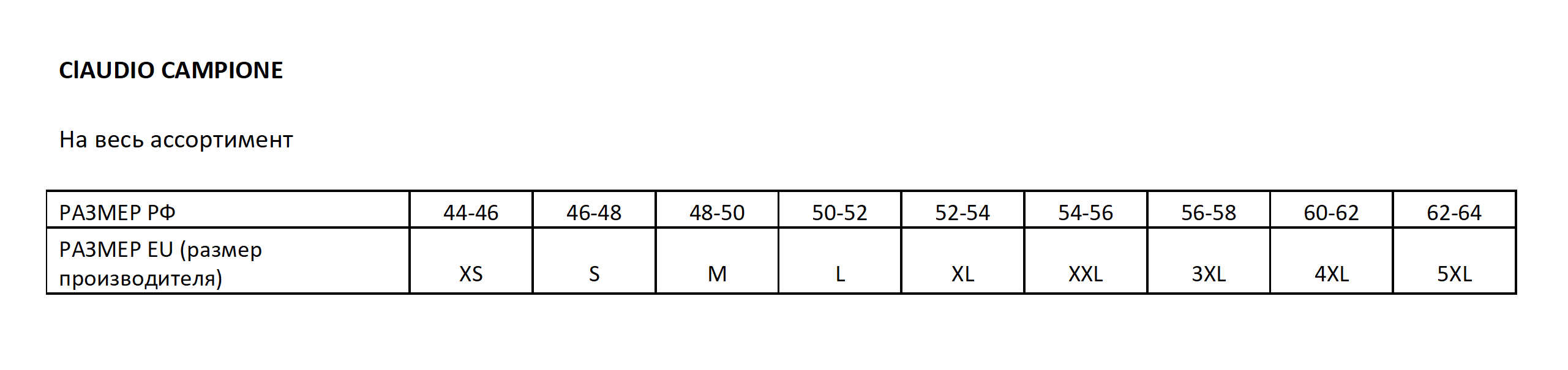 Размер производителя